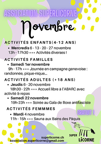 www.superlicorne.ch /// Association Super Licorne, 151 route de Vernier, 1214 Vernier /// association.superlicorne@gmail.com