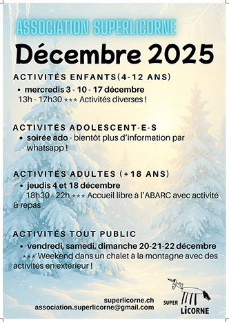www.superlicorne.ch /// Association Super Licorne, 151 route de Vernier, 1214 Vernier /// association.superlicorne@gmail.com