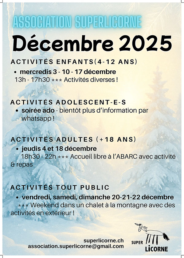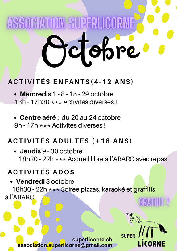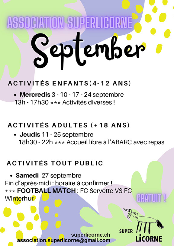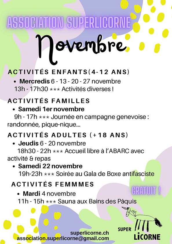 www.superlicorne.ch /// Association Super Licorne, 151 route de Vernier, 1214 Vernier /// association.superlicorne@gmail.com